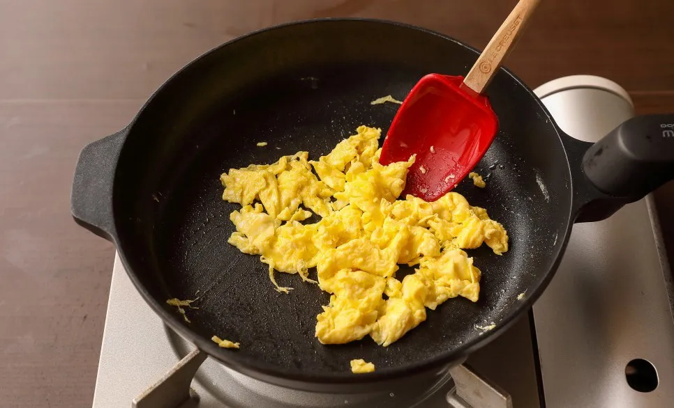 약한 불에서 부드러운 스크램블을 만들어주세요.