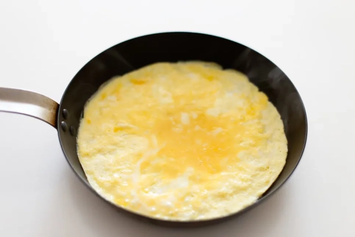 팬에 식용유를 살짝 둘러주고 달걀물을 부어주세요.