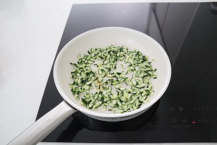 식용유 살짝 두른 팬에 센불에서 오이를 30초 정도 볶아주세요.