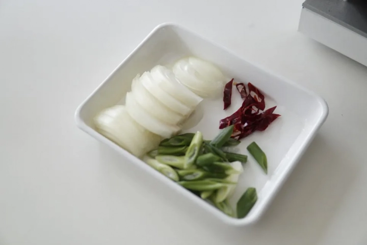[재료]: 두부 1모, 양파 1/2개, 대파 1대, 고추 1개