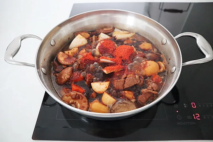 고춧가루를 더해 조리듯 끓이면서 매운맛을 입혀주세요.