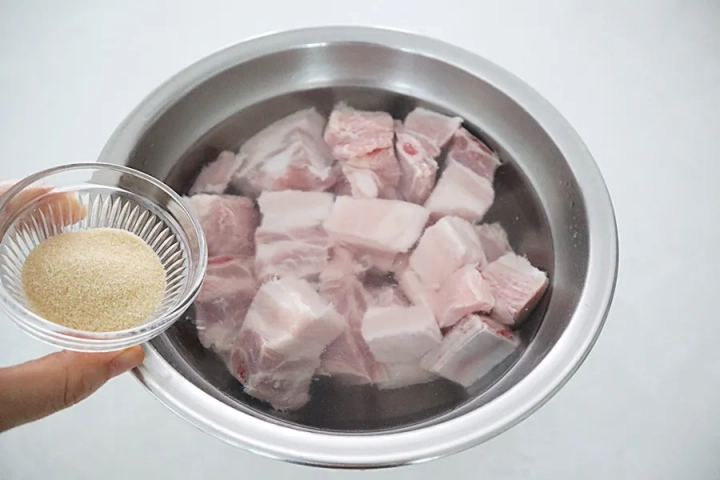설탕을 추가하면 핏물 빼는 작업을 단축시켜줘요.