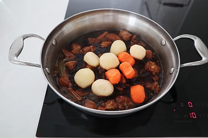 감자와 당근을 넣고 15분 정도 중불에서 끓여주세요.