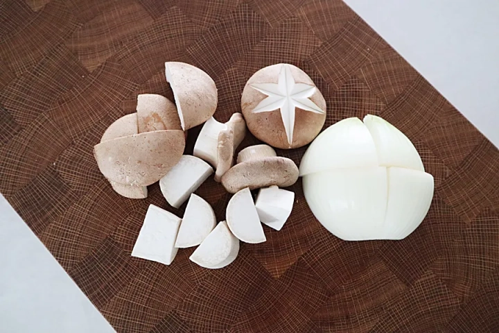 버섯과 양파는 적당한 크기로 잘라주세요.