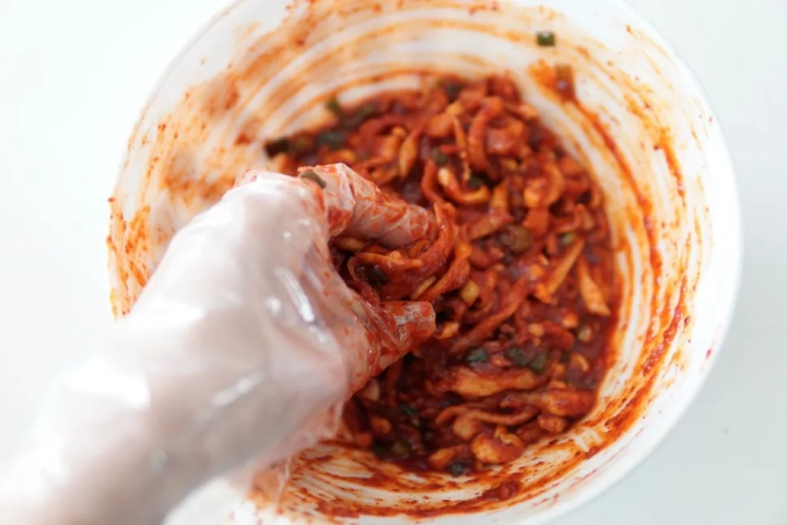 물기 짜낸 무에 양념재료들을 모두 더하고