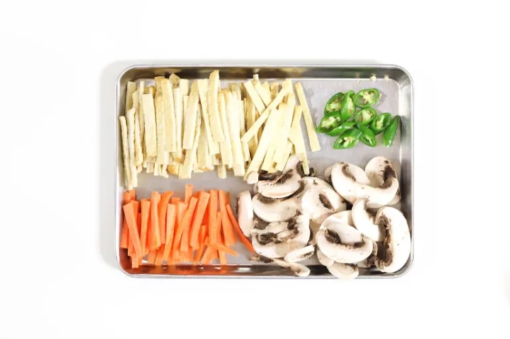 당근 1/4개, 대파 1대, 청양고추 1개, 멸치육수 1/4종이컵
