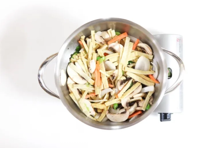 파기름향이 올아오면 어묵과 남은 야채를 넣고 골고루 볶아주세요.