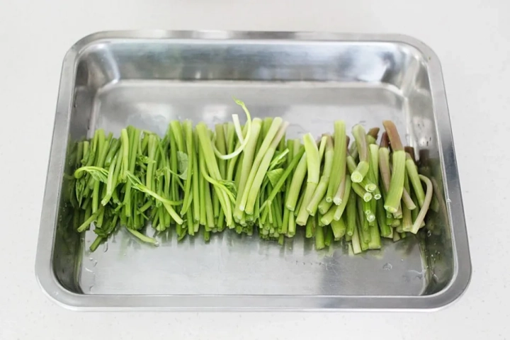 찬물에 여러번 헹궈 줄기부분만 적당한 길이로 썰어주세요.