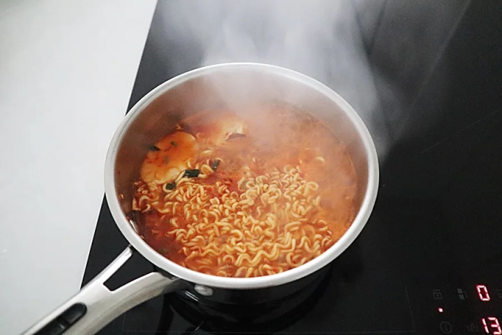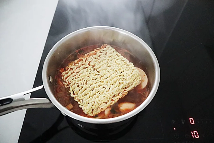 국물이 보글보글 끓어오르면 면을 넣어주세요.