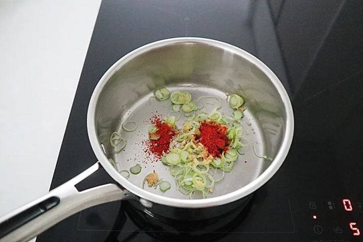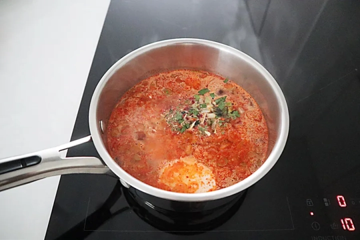 고춧가루 1큰술, 다진마늘 1큰술, 물 550ml, 계란 1개