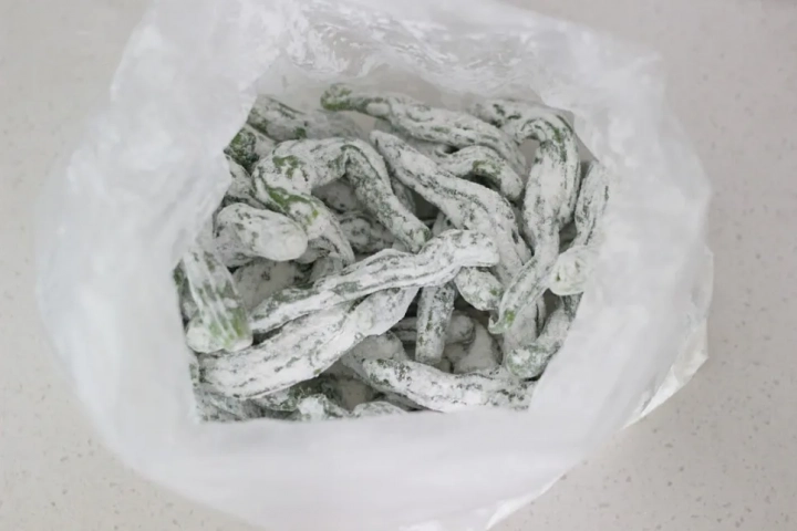 바로 비닐에 밀가루 3큰술과 꽈리고추를 넣고