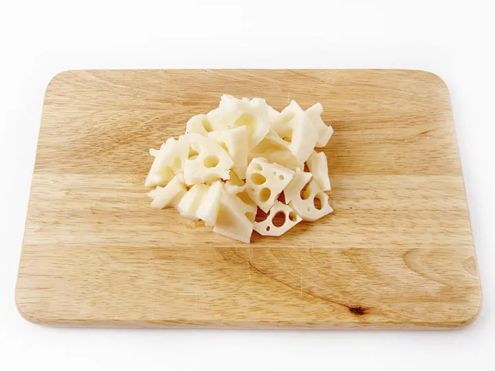 연근은 껍질을 벗기고 한입크기로 썰어주세요.