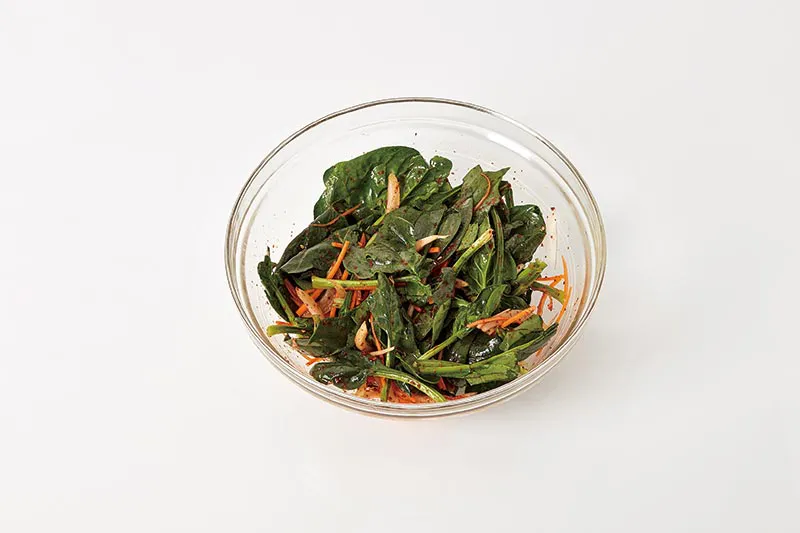 시금치의 숨이 죽지 않도록 최대한 살살 버무려주고