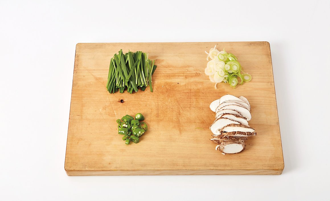 당근 1/3개, 부추 한줌, 대파 1/2대, 애호박 1/3개, 청양고추 1개, 표고버섯 2개,