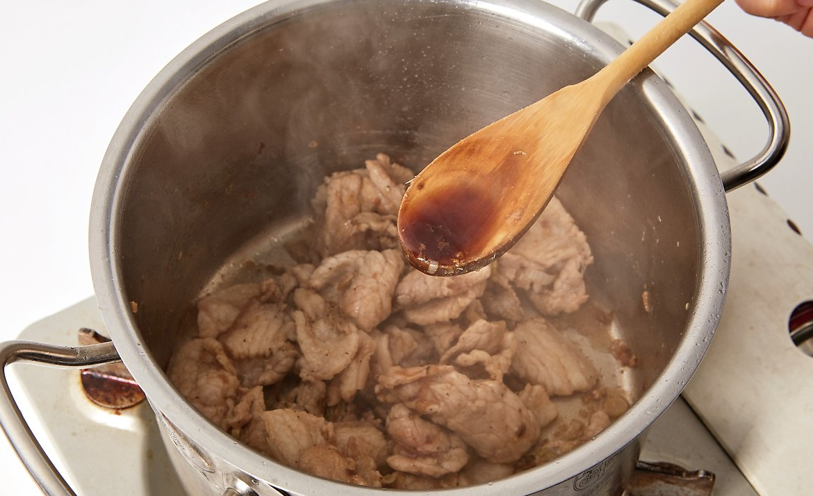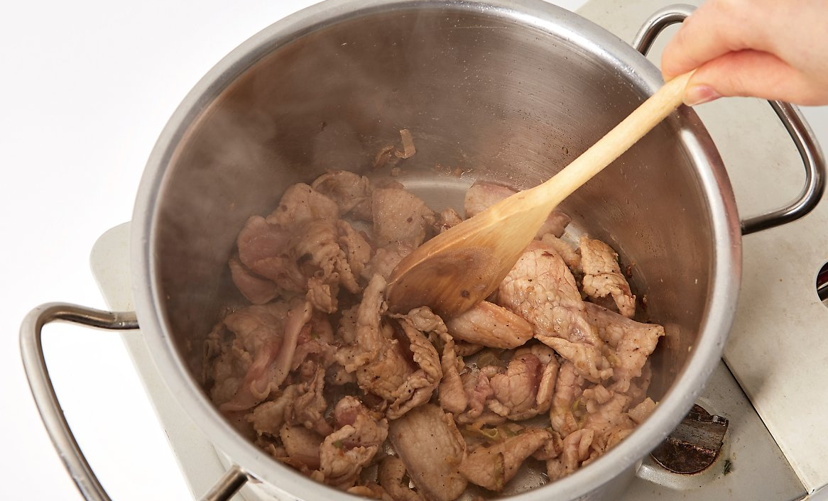 밑간한 돼지고기를 넣어 겉면의 색이 변할때까지 볶아주세요.