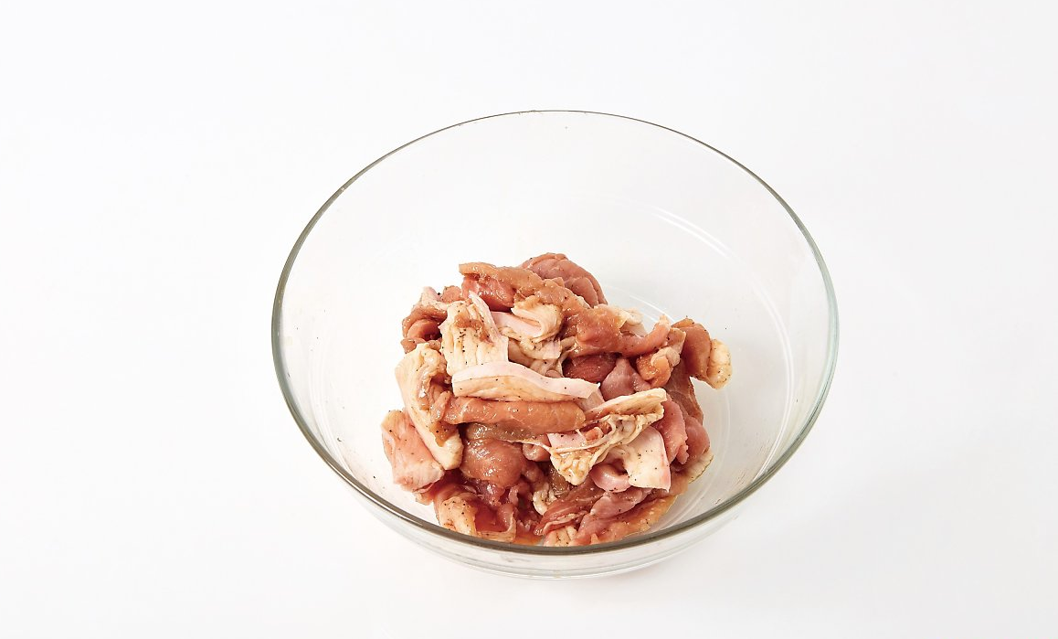 돼지고기는 한입 크기로 썰고 밑간재료를 넣어