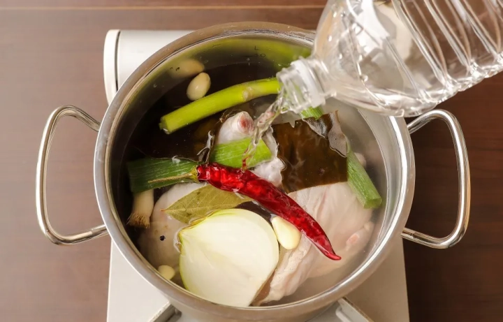 월계수잎을 더해 물 2.5L를 부어주세요.