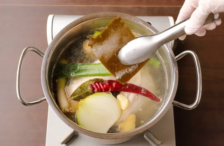 거품은 깔끔하게 걷어주고 다시마를 건져낸 뒤