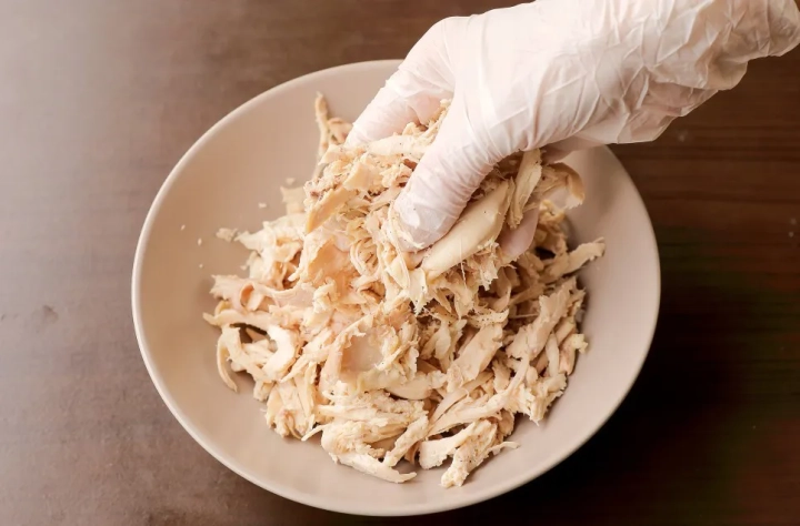 한 김 식힌 고기는 먹기 좋게 찢어주고