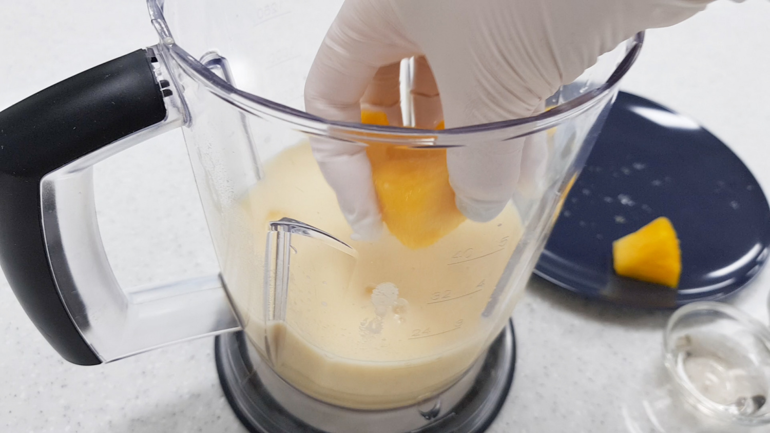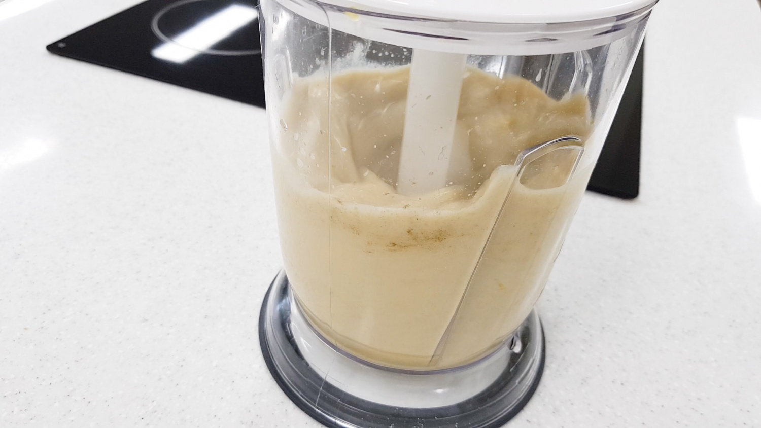 먼저 믹서기에 콩물을 넣어주세요.