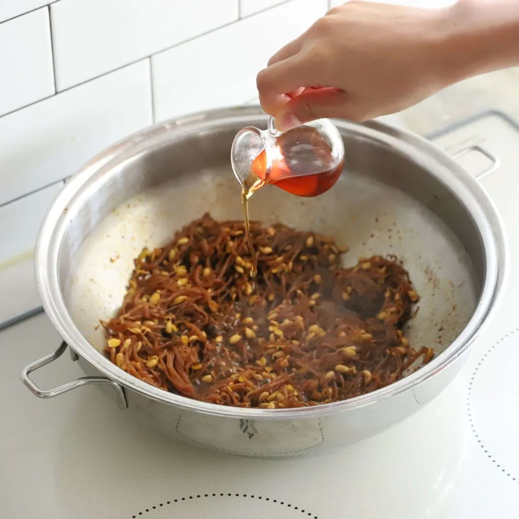 고춧가루 1/2큰술, 올리고당 2큰술, 참기름 1큰술, 통깨 약간