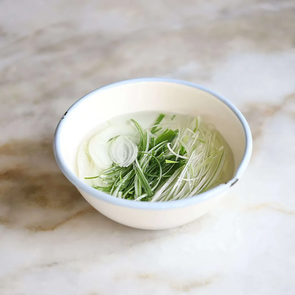 대파와 양파는 채를 썰고 찬물에 10분 정도 담갔다가