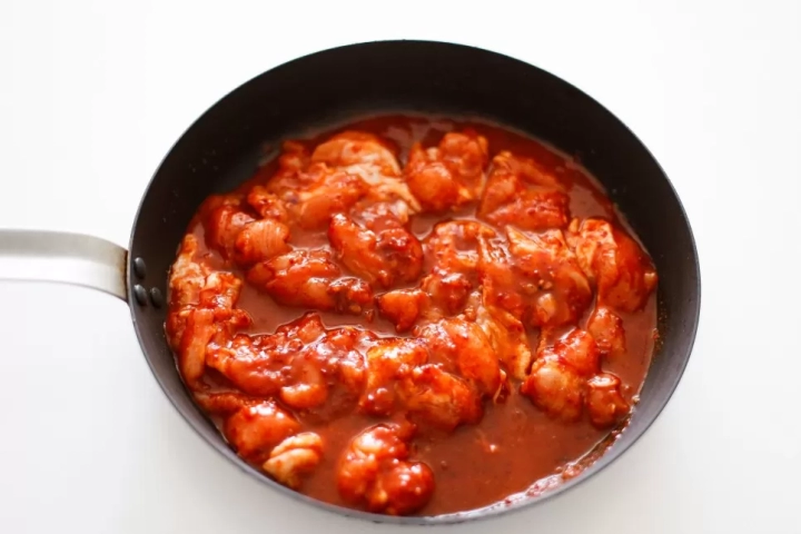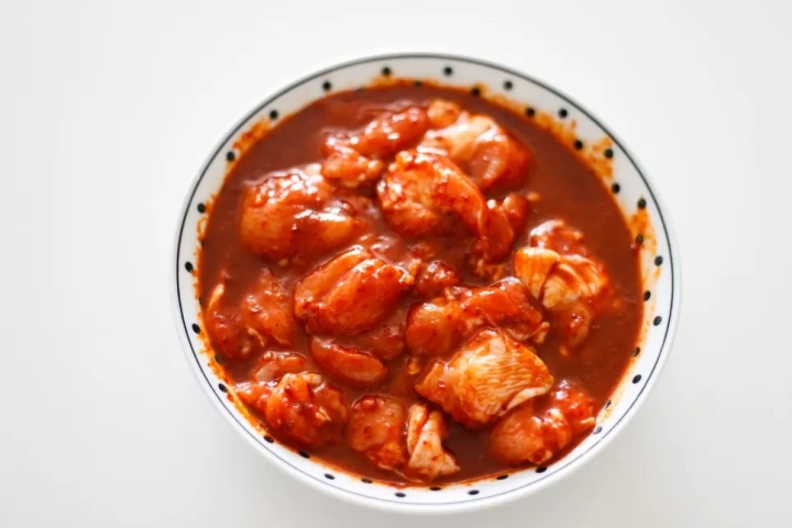 먹기 좋게 손질한 닭고기는 양념에 최소 30분 정도 재워주세요.