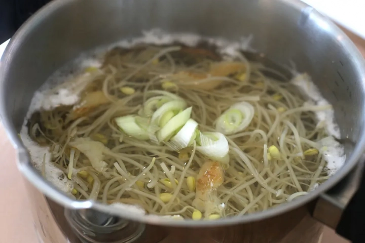육수가 잘 우러나오면 콩나물을 넣고 팔팔 끓여주세요.