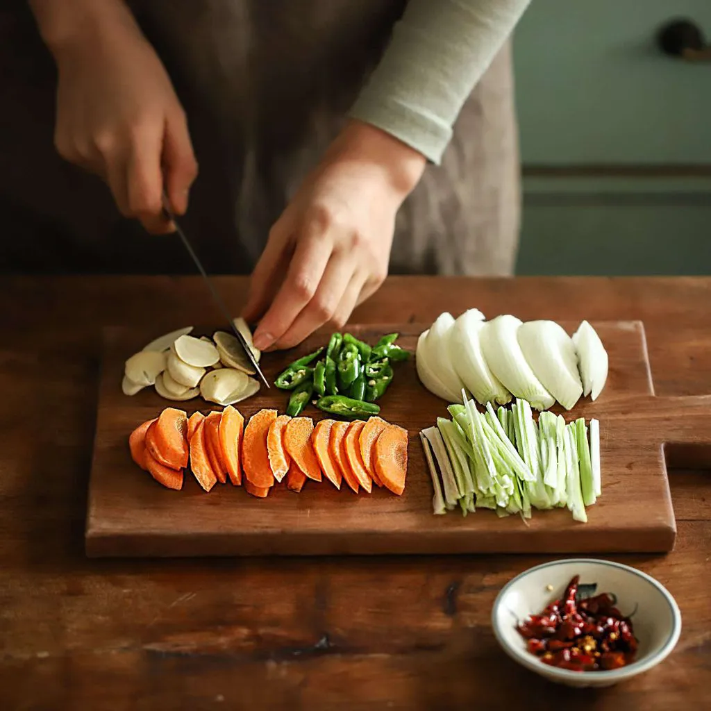 청양고추는 어슷하게 썰고 마늘은 편으로 썰어주세요.