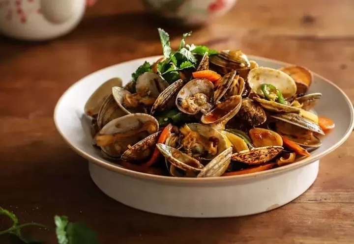 [재료]: 바지락 800g, 양파 1/2개, 당근 1/4개,