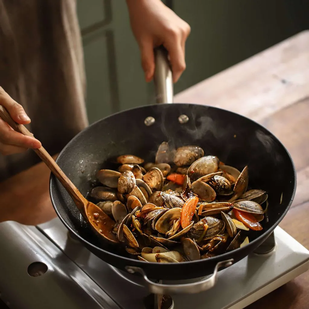 바지락과 양념장을 넣고 센 불에서 볶아주고