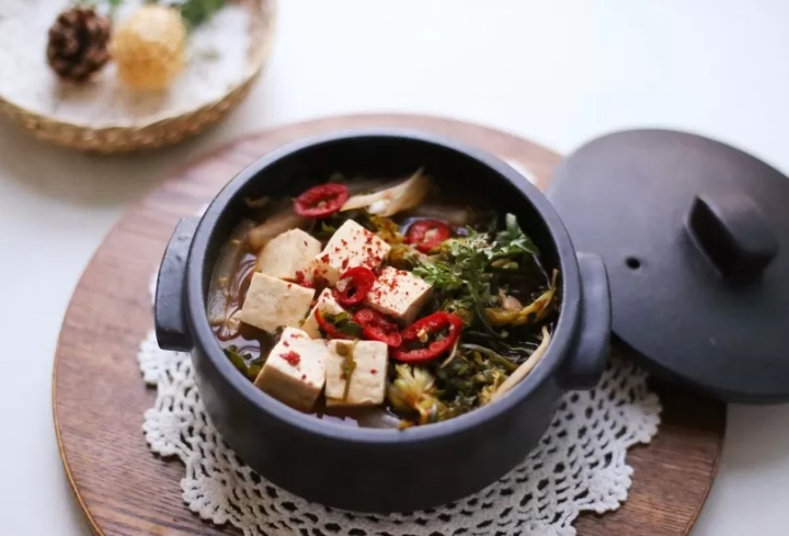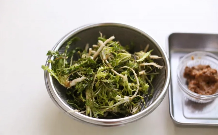 [재료]: 냉이 80g, 두부 1/2모, 무 70g, 양파 1/2개,