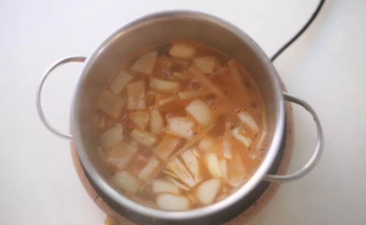 국물이 팔팔 끓고 무가 익어서 떠오르면