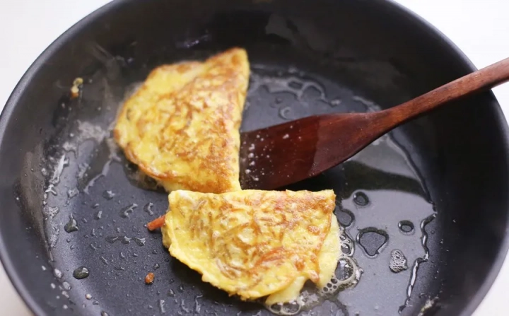 반으로 접은 후 뒤집개로 꾹꾹 눌러주면서