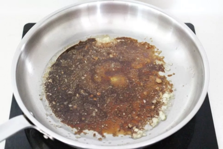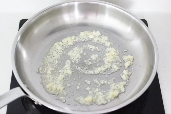 달군 팬에 식용유를 두르고 약불에서 다진 마늘을 볶아주세요.
