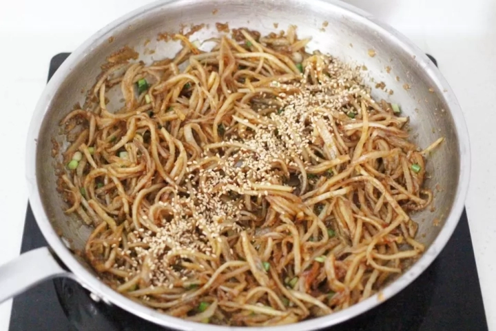 오징어채는 오래 볶으면 질겨질 수 있으니