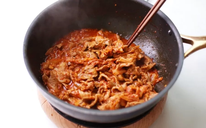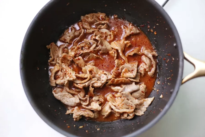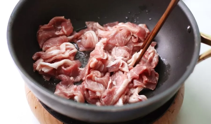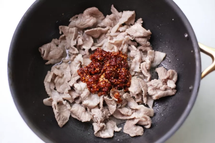 돼지고기를 넣어 펼쳐주면서 고루 익혀주세요.