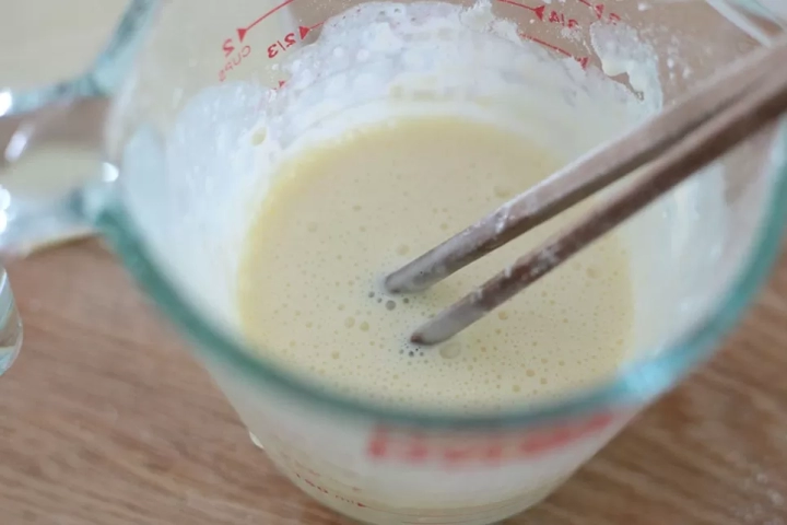 우유와 핫케이크 가루를 더해 반죽을 만들어주세요.