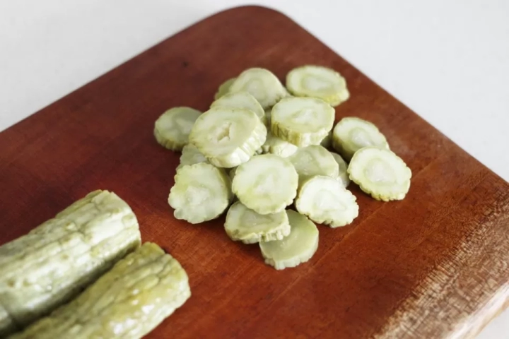[재료]: 오이지 2개, 쪽파 2대, 고추 1개,