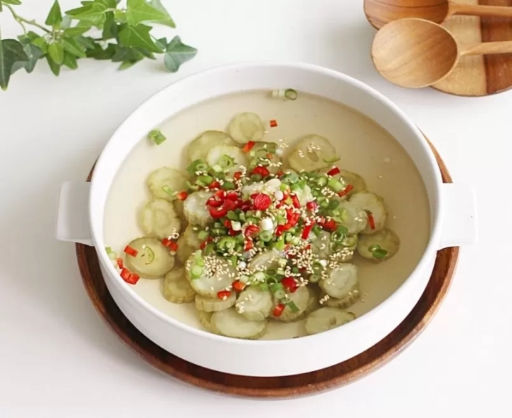 오이지 맛이 우러나와 훨씬 시원하면서 맛있어요.