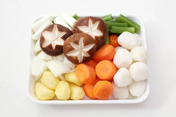 양파는 한입 크기로 썰고 무, 당근은 동글동글하게~