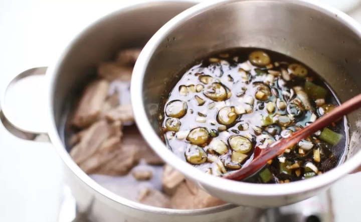 냄비에 갈비를 넣고 양념재료들을 모두 더해주세요.