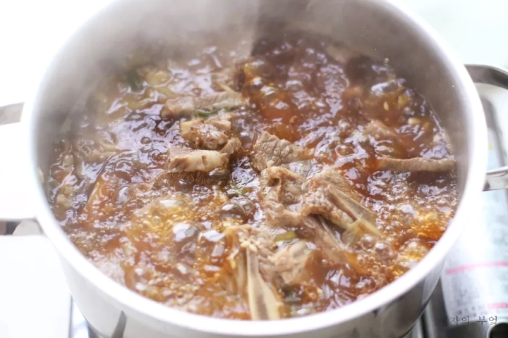 갈비가 잠길 정도로 물을 넉넉하게 받고
