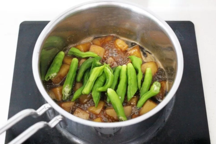 꽈리고추와 올리고당을 넣고 졸이면서 끓여주세요.