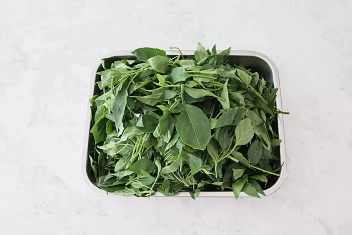 손질한 고춧잎을 넣어 1분 정도 데쳐주세요.