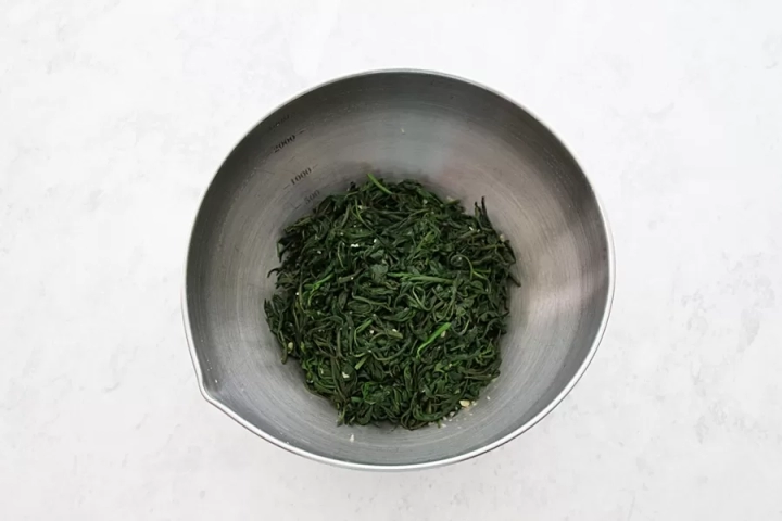 데친 고춧잎은 빠르게 찬물에 헹궈주고