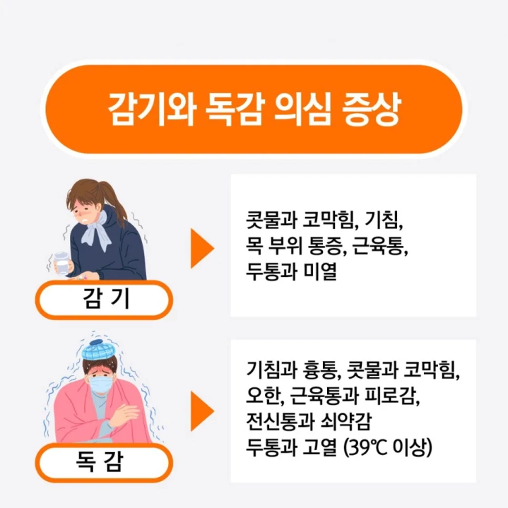 환절기에는 감기에 걸리기 쉽죠. 증세가 비슷하여 흔히 독감과 감기를 같은 질환으로 착각하는 경우가 많지만 감기와 독감은 다른 질환이라고 하는데요. 특히 심한 감기가 독감이라고 생각하는 분들이 많아 방치하기 쉽고 심한 합병증을 유발할 수 있다고 합니다. 감기와 독감 증상 및 차이점에 대해 소개해드릴게요.